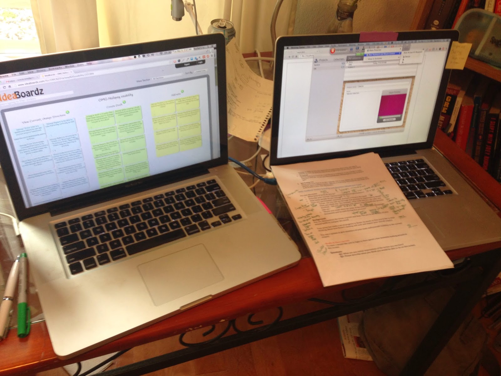 - Computer 2, muted: Sococo (to communicate with coworkers), view observers live notes on ideaboardz, Participant contact info (in case of issue), the Schedule